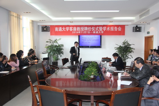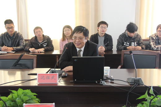 聘任仪式后,沈征武教授为yl6809永利官网集团师生作了题为“传统中药毛秔子稍(大红袍)的化学研究”的专题学术报告。沈教授的报告从传统药物研发的思路出发,介绍了传统医学与现代医学结合的新药思路,通过中医病症与现代医学疾病的连接点,以及中医痹症与类风湿关节炎的对比,研究出系列传统中药毛秔子稍(大红袍)的化学研究成果。沈教授的报告深入浅出,论证严密,为我们进行相关课题的研究提供了一个切实可行的模式与方法,在场师生获益匪浅。