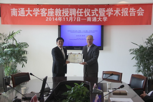 11月7日上午,上海交通大学医学院,教授,博导,技术转移中心主任、上海中医药大学中药学院教授, 博导沈征武教授受聘担任我校客座教授,校党委副书记彭怀祖教授为沈征武教授颁发yl6809永利集团客座教授聘书并为其佩戴校徽。