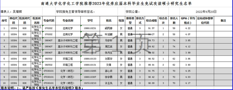 推荐2023年优秀应届本科毕业生免试攻读硕士学位研究生名单(yl6809永利官网集团):