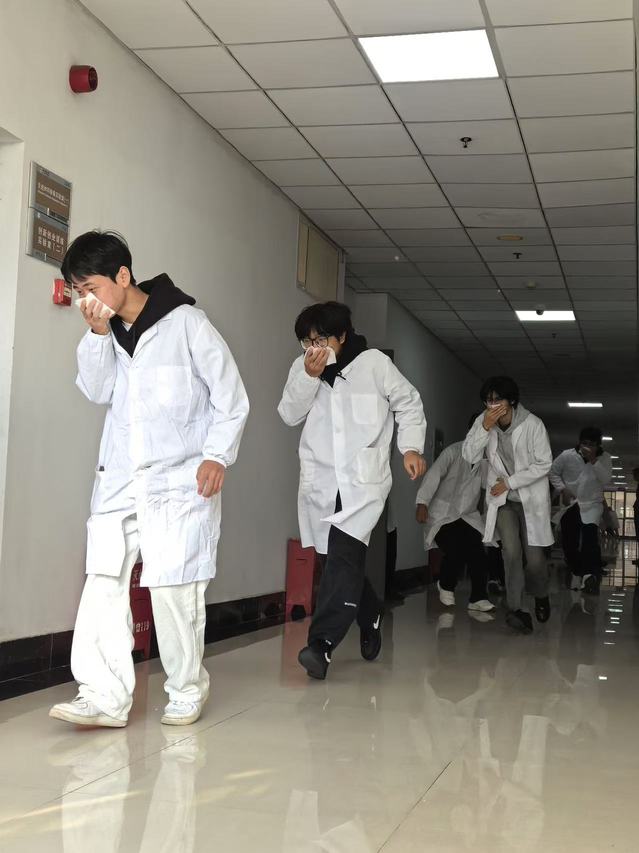 此次应急疏散暨危化品处置演练取得圆满成功。通过此次演练,同学们亲身感受到了火场的危险,学习到了危化品处置步骤和灭火器使用方法,熟练掌握了火灾预防与火场自我救护的核心技能,增强了消防安全意识,为营造安全、和谐的实验室环境提供了保障。(刘烨晖)
