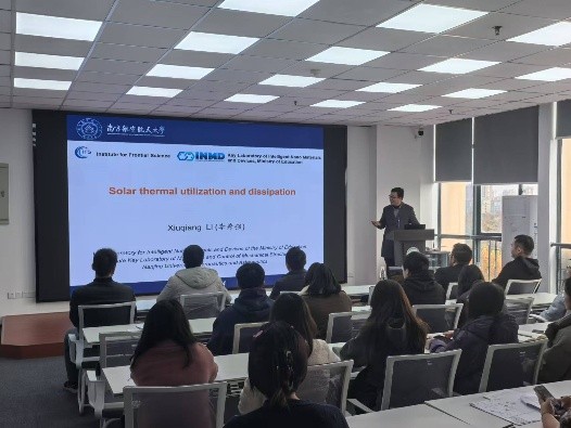 在本次报告中,李秀强教授从人体的热循环角度阐述了他们课题组在光热调控衣服中的应用,还介绍了净化水方面的潜能及其在建筑节能方面的研发成果,研究成果为能源、环境等领域提供了全新的研究视角。李秀强教授报告内容丰富多彩,生动有趣,在场观众全都聚精会神。报告结束后,李教授与现场观众积极互动,耐心的回答了教师和学生的提问,令在场师生收获颇丰。最后,本次报告在热烈的掌声中圆满结束。(黄强/王毅朴)