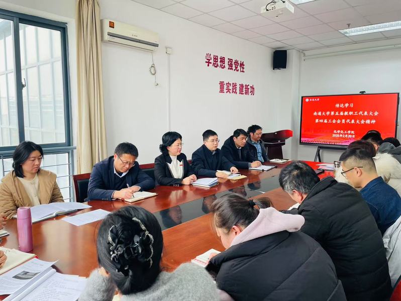 会上,钱涛传达了校党委书记、校长杨宇民在学校“两代会”上作的题为《干字当头 奋发有为 努力谱写特色鲜明的国内一流大学建设新篇章》的工作报告和闭幕会上的讲话精神,全面回顾了2024年度学院在内涵建设中取得的成绩,要求全体教职工要统一思想、凝聚共识,紧密结合学校发展的新形势新任务新要求,主动把大会精神转化为学院高质量发展的实践路径,答好“通大建设,化院何为”的新答卷。