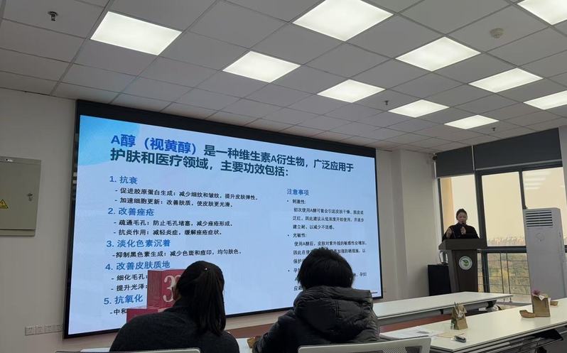 最后环节,单佳慧老师为大家带来了一场关于护肤的“美丽课堂”。单老师结合自身经验,详细讲解了护肤的基本步骤、保湿的重要性以及A醇(视黄醇)的作用,并分享了实用的护肤技巧。她希望女教职工们用平和的心态面对生活,护肤重在护心,要做内外兼修的自信美丽女性。