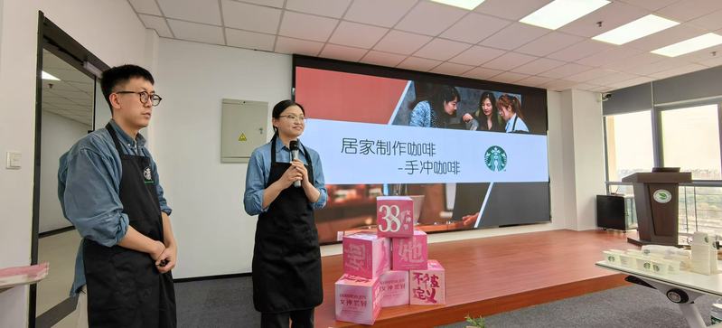 活动现场,来自星巴克的两位咖啡师为女教职工们带来了一场别开生面的咖啡文化品鉴活动。咖啡师们以“居家制作咖啡-手冲咖啡”为主题,详细讲解了手冲咖啡的制作方法、咖啡豆与咖啡粉的保质期限、不同水质对咖啡口感的影响等内容,现场指导大家调制了来自卢旺达的咖啡。女教职工们兴致勃勃地学习咖啡冲泡技巧,品尝了香气满溢的咖啡,感受着咖啡文化的独特魅力。