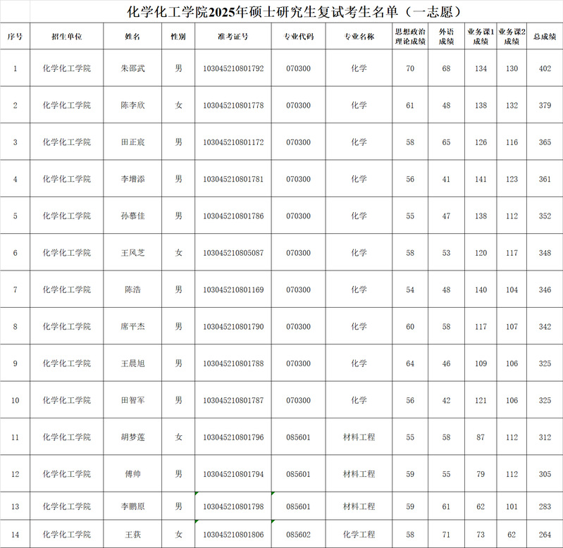 yl6809永利官网集团2025年硕士研究生复试考生名单(一志愿)