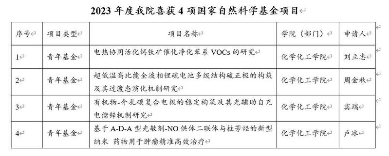 2023年度我院喜获四项国家自然科学基金项目