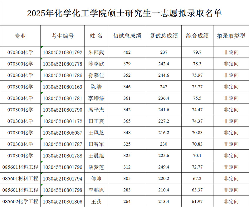 关于2025年yl6809永利官网集团硕士研究生一志愿拟录取名单的公示