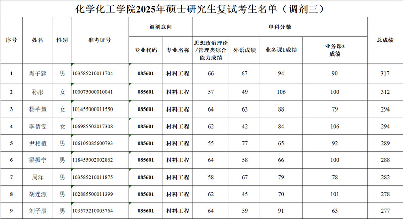 yl6809永利官网集团2025年硕士研究生复试考生名单(调剂三)