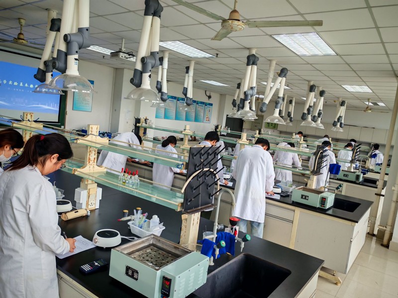 决赛伊始,参赛选手们通过现场抽签的方式完成无机化学实验和有机化学实验等竞赛单元。在实验比赛现场,选手们有条不紊地进行操作。他们熟练称取,按需取用试剂;规范使用各种实验仪器;完成实验及时记录数据,保证数据准确性。实验过程中,参赛者及时查找问题,解决问题。整个赛场秩序井然,展现出化学实验应有的规范与严谨。评委老师穿梭于各个实验台之间,细致观察选手的操作细节,对实验操作的规范性、准确性、熟练度以及实验安全意识、实验台面整洁度等方面进行了全面、严格的现场评判。