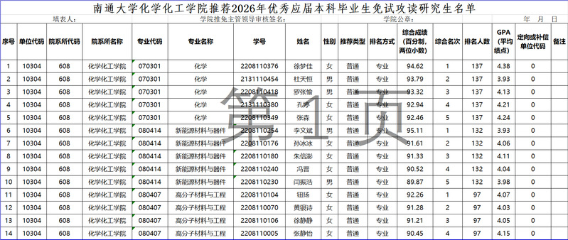 yl6809永利官网集团推荐2026年优秀应届本科毕业生免试攻读研究生名单